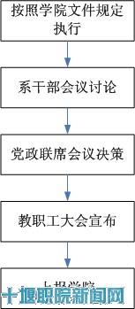 为进一步贯彻落实《中国共产党普通高等学校基层组织工作条例》和《中共湖北省委高等学校工作委员会关于实施<中国共产党普通高等学校基层组织工作条例的办法》,信息与智能工程系重要事项的决策认真贯彻落实三级会议制度,即学院的党政联席会议制度、系级干部(系领导班子、专业带头人、办公室主任)会议制度和全系教职工大会制度,坚持和健全民主集中制原则,保证系部重大问题决策的民主化、科学化、规范化,根据我系实际情况,为了保证民主集中制的贯彻落实,严格预防腐败的滋生。系党总支是本单位的政治核心,在院党委的领导下开展工作,与系部行政各司其职,共同负责贯彻执行院党委、院行政的各项决定和决议。系部党总支要发挥监督保证作用,和行政之间既要明确分工、各负其责,又要密切配合、相互支持。现把我系办事流程图总结如下: