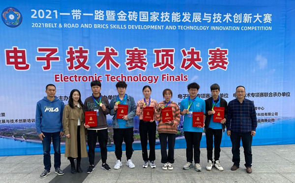 新闻网讯2021一带一路暨金砖国家技能大赛电子技术赛项国内赛决赛于10月11日—13日在湖北枝江职教中心举行,来自全国各类职业院校43支队伍参加比赛。开云官网kaiyun官方网站入口组织参赛队参加该赛项,经过连续5个小时的激烈角逐,应用电子技术专业裴贤、周紫欣、卢存勇荣获高职组团体一等奖,付欢、李宁峰、刘勇军荣获高职组团体三等奖。