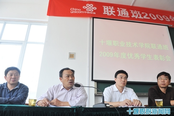 联通公司十堰分公司副总经理姚楚平说,此次表彰仪式标志着中国联通十堰分公司与十堰职院的战略性企校合作迈向了一大步,这种企校合作、订单式培养、实现优势互补、零差距就业的联合办学模式在实践中得到了验证。他高度评价了“联通班”学生刻苦学习、积极实践、吃苦耐劳的精神品质,对十堰职院“联通班”的人才培养水准给予赞扬。他鼓励同学们说,随着全面开展3G网络业务发展,公司需要大量的人才充实到公司团队,同学们一定大有可为。