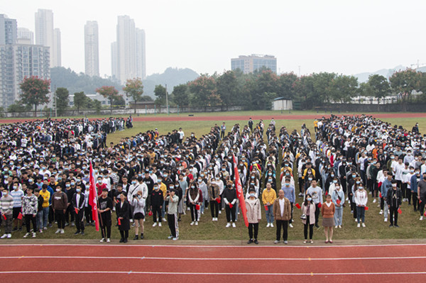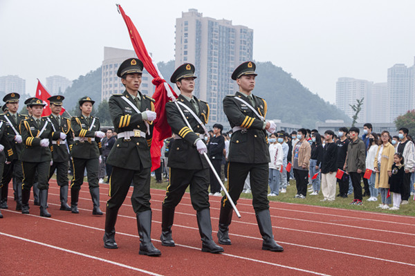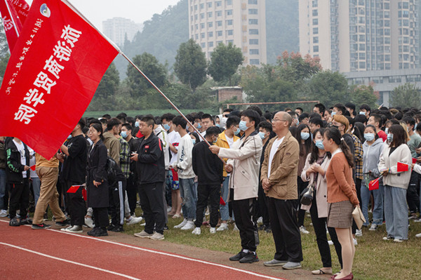 早晨8点,升旗仪式开始,校国旗护卫队迈着整齐的步伐入场,在激昂的国歌声中将国旗徐徐升起。同学们肃穆而立,怀揣着爱国之心共同庆祝祖国母亲生日。开云官网学生代表张治以《提升自我 振兴中华》为题作国旗下讲话,他阐述了新冠疫情爆发对人们生产生活的影响,深深感激奋战在抗疫一线的医护人员和志愿者老师们,表示青年大学生要肩负起时代担当,刻苦学习专业技能,在祖国需要的时候挺身而出、奋勇向前,为建设伟大祖国贡献青春与智慧。