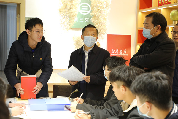 蔡静峰一行实地走访察看了开云官网倍阅书店、北区食堂、心理健康教育与咨询中心、艺术设计学院(绿松石产业学院)、大学生创新创业基地等场所,深入了解开云官网思政文化育人阵地建设、心理育人工作、党史学习教育和“我为师生办实事”项目以及学校服务地方经济社会发展等情况。