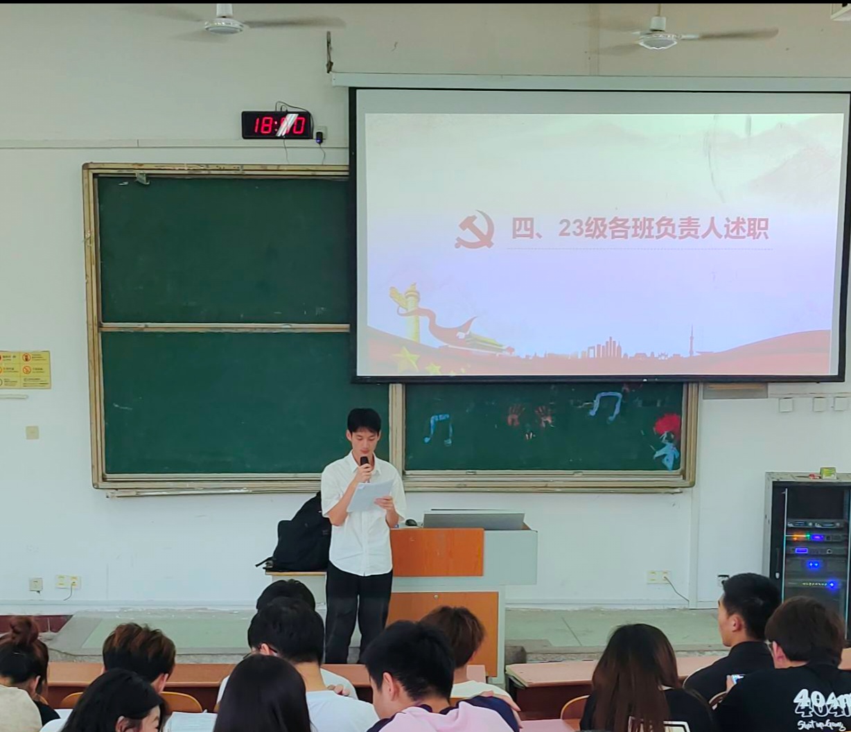 其次,驻院教员代表围绕“修身计划”开展情况进行了全面总结,展示了工作中的亮点和创新点,并对后续工作思路和计划进行了介绍。随后,2023级各班班长也紧紧围绕“学风建设”“党团建设”“特色活动”“志愿服务”等方面进行了分享交流,分析了优势和不足并对未来工作进行了展望。