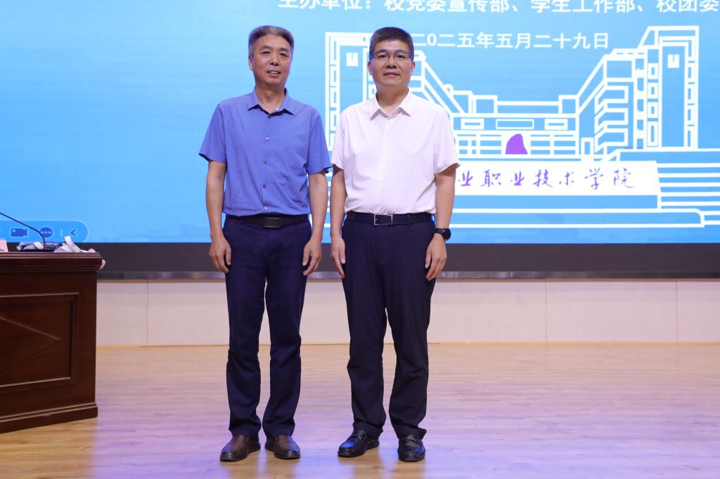 互动环节气氛热烈,同学们围绕专业精进、职业规划、就业选择等热点问题踊跃提问,刘鹏结合自身经验一一给予耐心解答,为学子们拨开迷雾,指明奋进方向。活动尾声,校纪委书记毛义忠代表学校对刘鹏表示感谢并赠送校园文创产品。