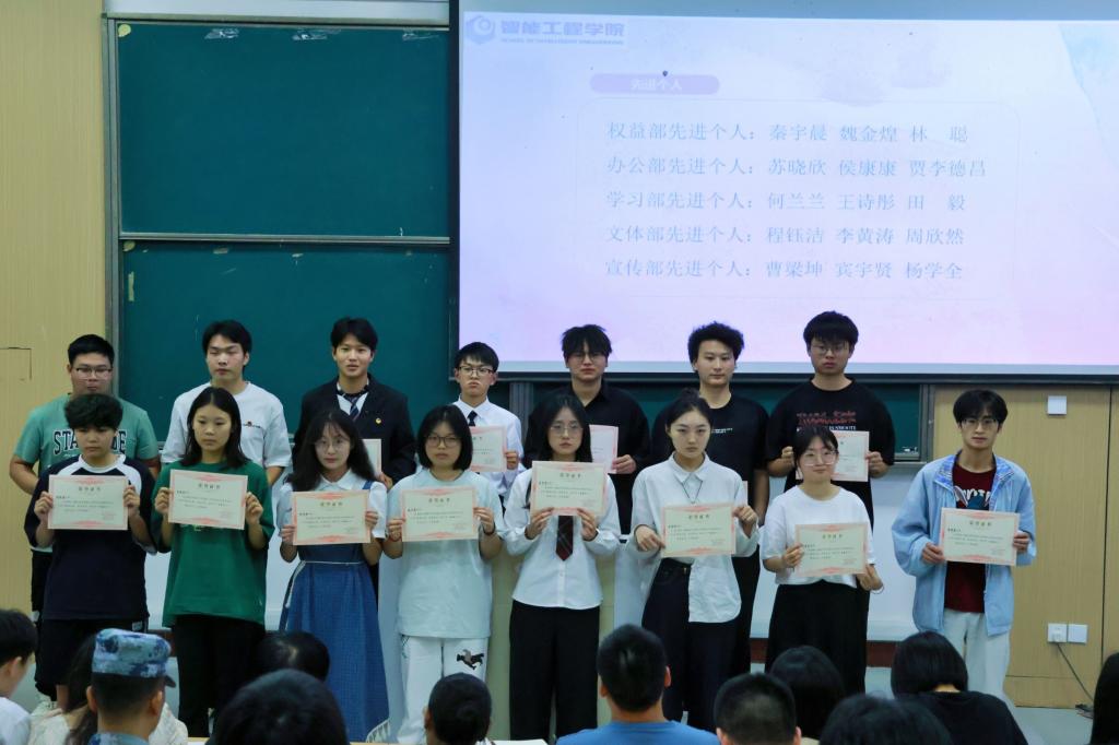 述职结束后,大会进入竞选环节。候选人们依次登台,自信从容地展现个人优势,深入阐述未来工作规划,畅谈对学生会发展的创新构想。他们的精彩发言,充分彰显出对学生工作的炽热情怀与责任担当。计票间隙,大会对表现突出的学生干部与干事进行表彰。