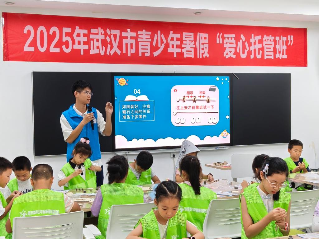 新闻网讯(文/金顶胜 蔡思鸣 图/蔡思鸣)7月7日,开云kaiyun官方网站kaiyun官方网站入口“青衿护航”托管班志愿团走进武汉市东西湖区常青花园青少年空间,为期18天的暑期爱心托管服务正式启动。41名社区儿童与志愿者齐聚一堂,共同开启兼具知识学习与趣味体验的暑期成长之旅。