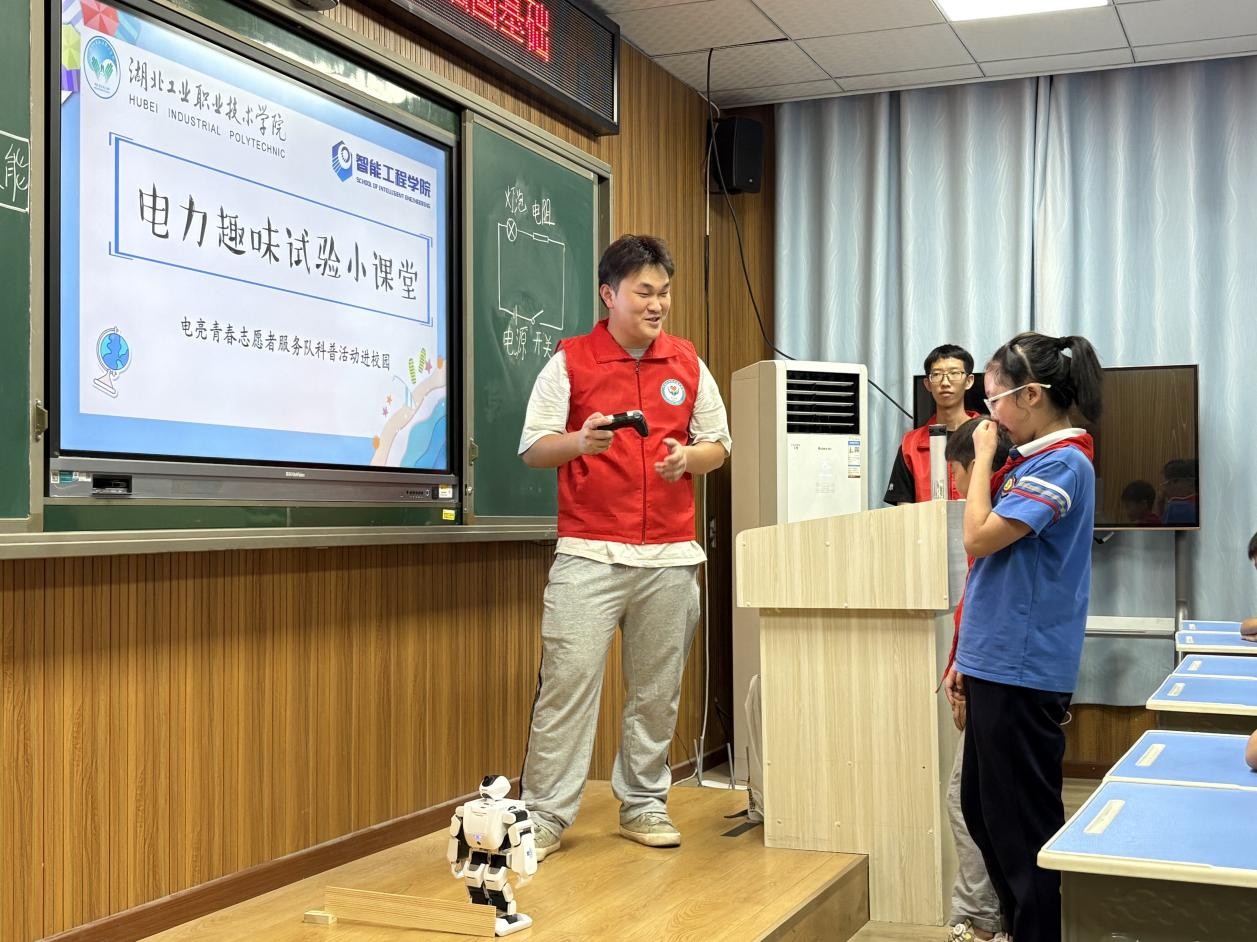 新闻网讯(通讯员 张蕾 韩马豪)9月16日,茅箭区全国科普月主场活动暨“科普进校园”主题活动在茅箭区实验学校举行。开云kaiyun官方网站电亮青春志愿者服务队受邀参与,为50余名小学生打造“电力趣味实验小课堂”,以自制小台灯、手摇发电机、智能家居演示及机器人互动,让孩子们在实践中探索电力科学。