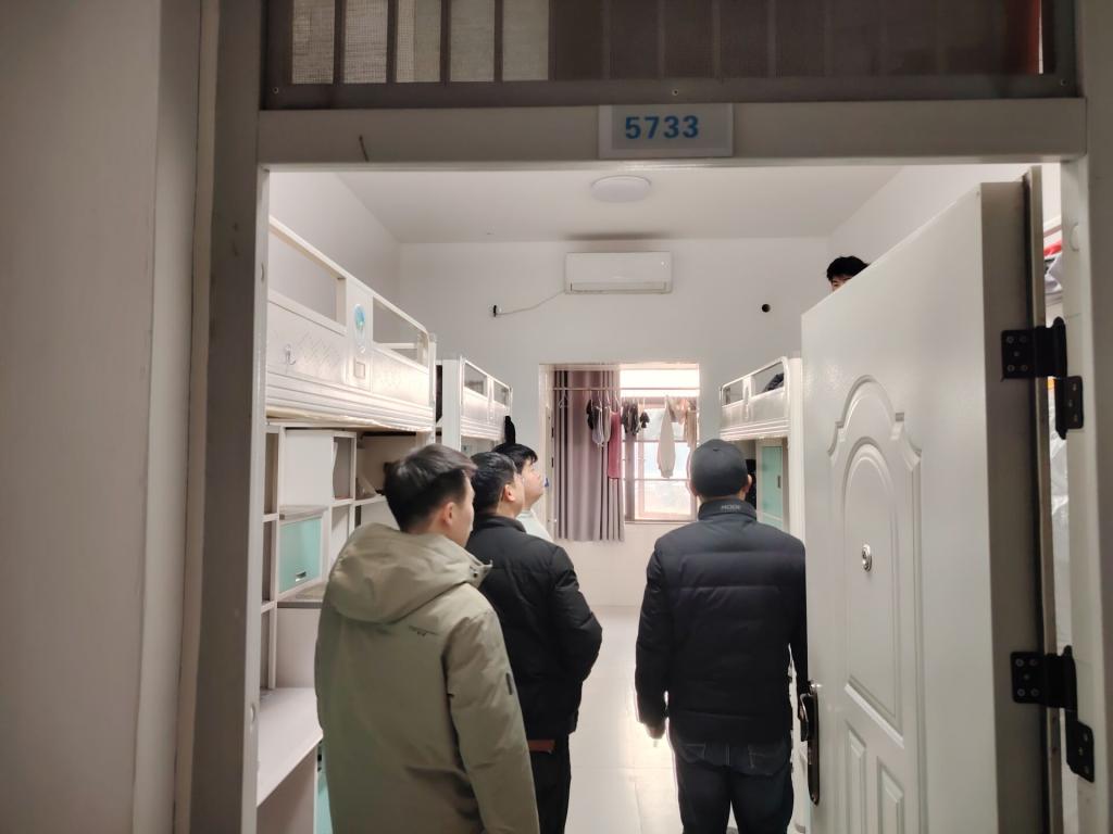 检查队伍重点走访了嘉园3栋、嘉园5栋、嘉园6栋及馨园1栋。此次检查聚焦于学生离校情况核实与宿舍安全状况排查,老师们逐一查看各寝室,仔细检查门窗是否锁闭、电源是否完全切断、室内有无留存易燃易爆或其他危险物品。